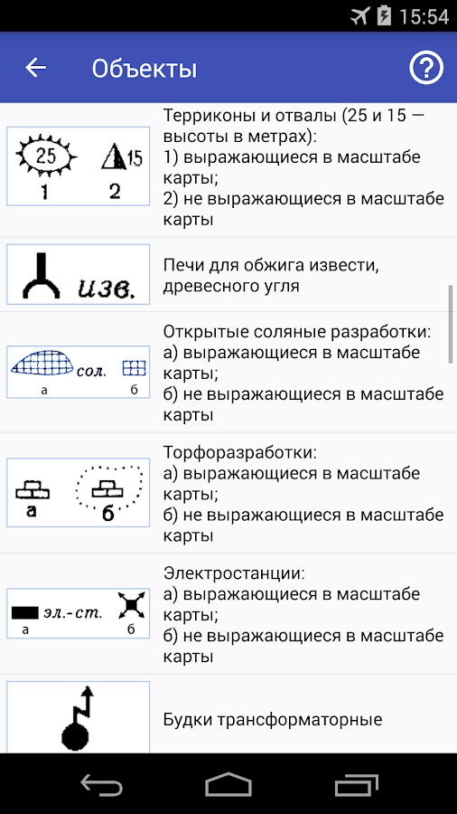 — Алфавитный перечень сокращений и аббревиатур, встречающихся на топографических картах;