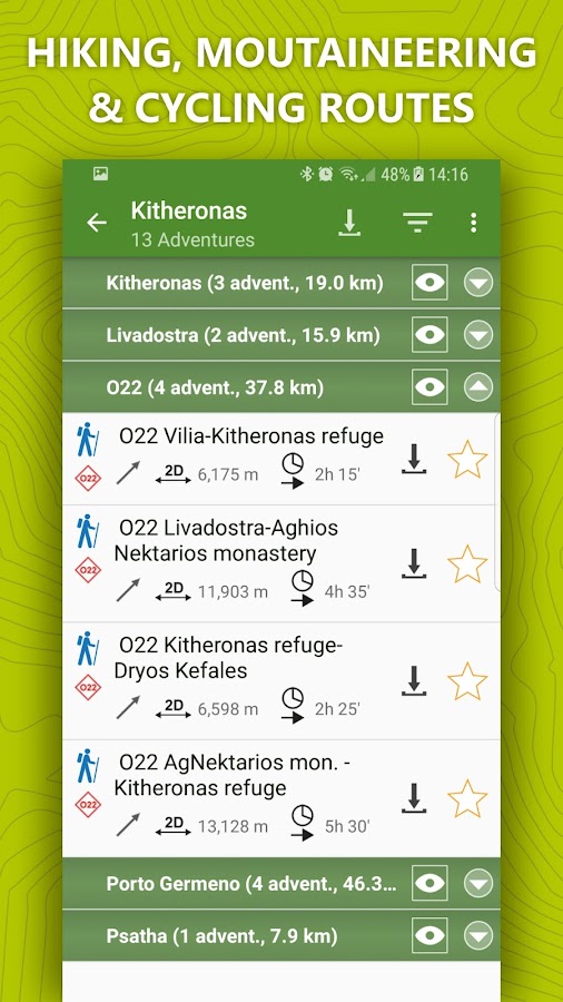 Topoguide предоставляет доступ ко всем туристическим маршрутам topoguide.gr с еще большим количеством контента, чем на веб-сайте!