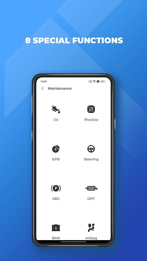 3. 8 специальных функций: сброс масла, адаптация дроссельной заслонки, сброс EPB, сброс BMS и многое другое.