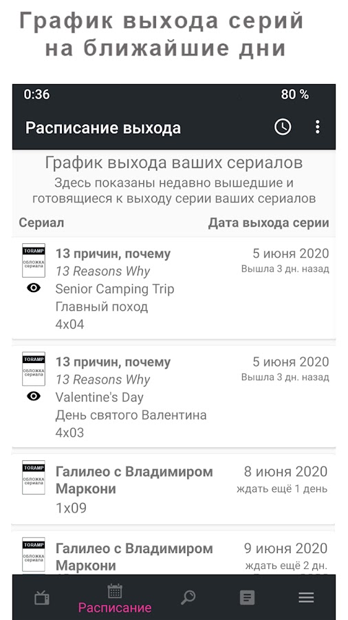 Скачайте приложение Toramp — расписание сериалов для Android бесплатно - последняя версия (1.5.6.2) уже доступна для установки на ваш телефон или планшет.