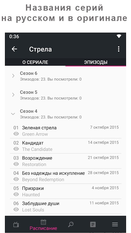 • Каталог с огромным количеством сериалов для добавления в расписание