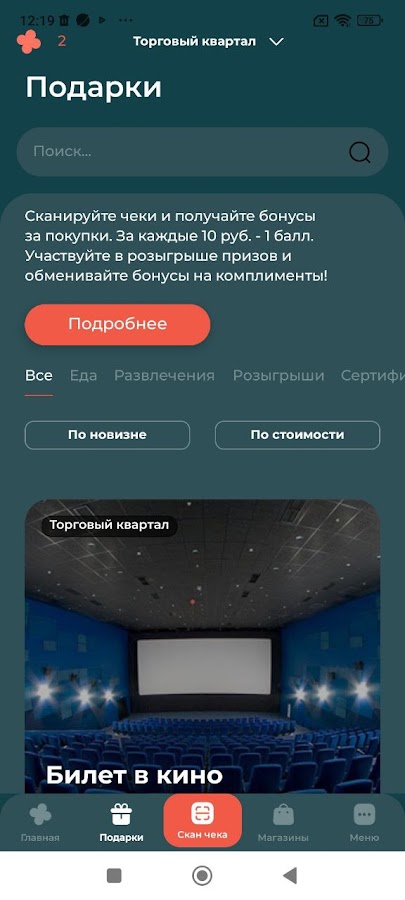 С приложением ШОППИНГ ЧЕЛНЫ совершать покупки стало еще приятней. Покупайте, как привыкли в ТРЦ Торговый Квартал или Сити Молл, и получайте комплименты от магазинов и ресторанов: