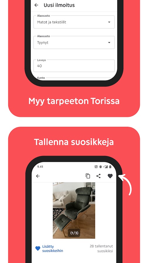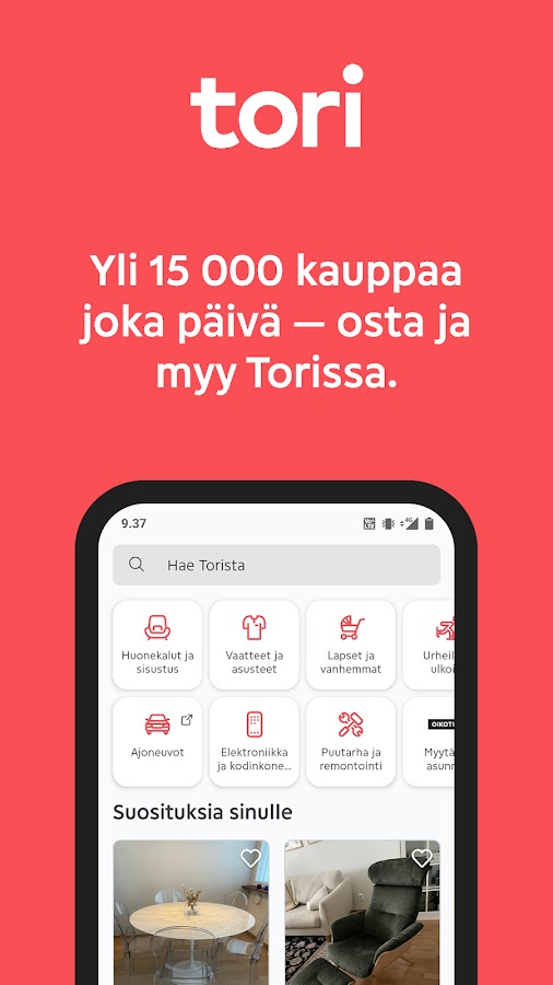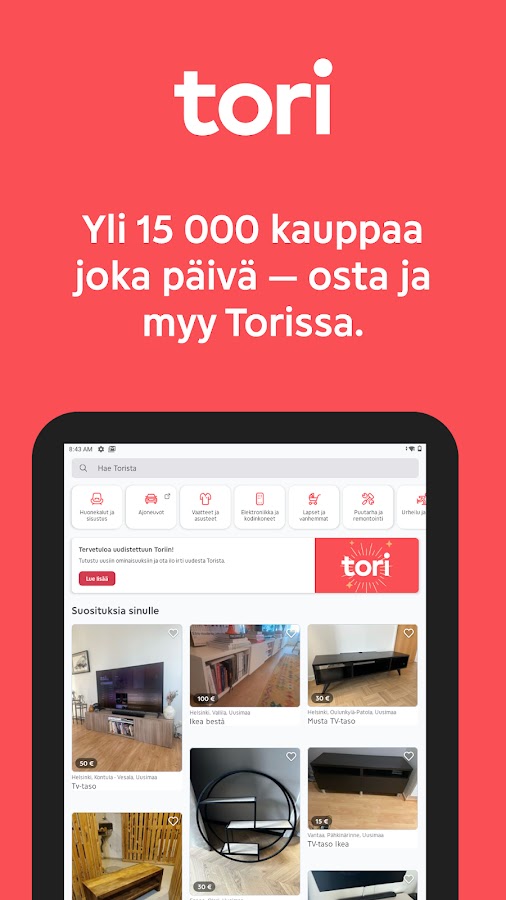 Рынок является крупнейшим и самым популярным рынком Финляндии. Каждый месяц более 3 миллионов финнов делают хорошие магазины и находки в Тори. С приложением Tori уплата десятины становится еще проще, и другому человеку не нужно искать новый дом в другом месте.