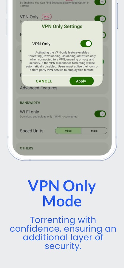 — Выберите единицу скорости: Мбит/с или МБ/с. Torrent Pro соответствует вашим потребностям.