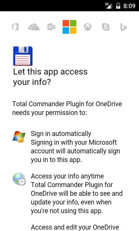 Этот плагин позволяет получить доступ к Windows Live OneDrive счета Cloud Drive от Total Commander. Это требует Android 2.2 или более новой из-за используемых библиотек Microsoft. Вы также должны реальный счет окон, чтобы OneDrive доступа. Поддерживаются несколько учетных записей.