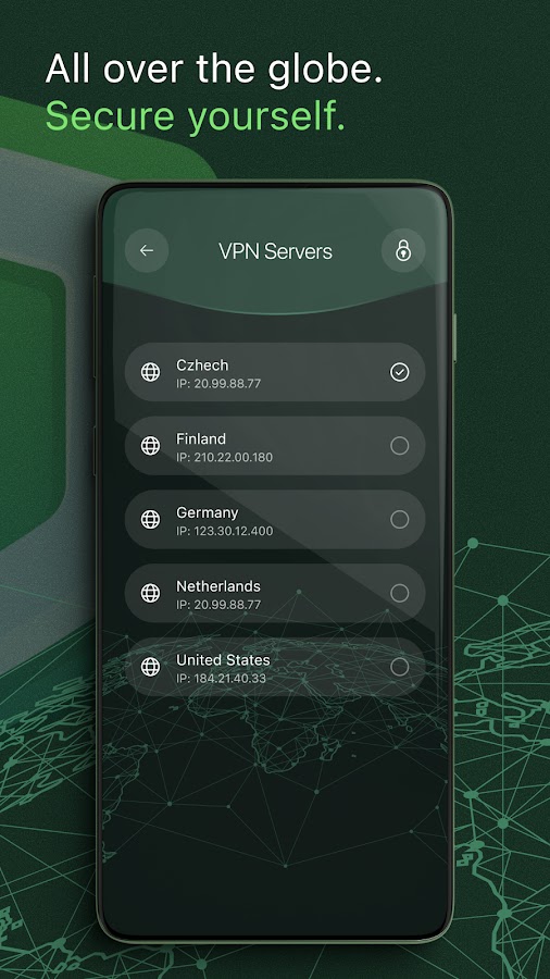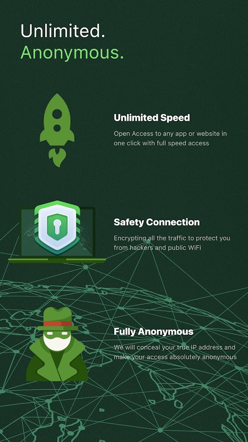 Регистрация не требуется. Достаточно одного касания для выбора и одного касания для подключения к нужному серверу.