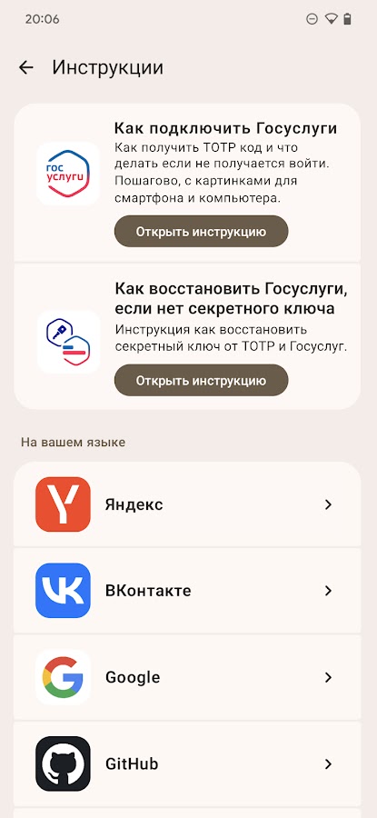 В приложении больше 100 туториалов — по шагам со скриншотами как подключить TOPT Auth для госуслуг и других сайтов