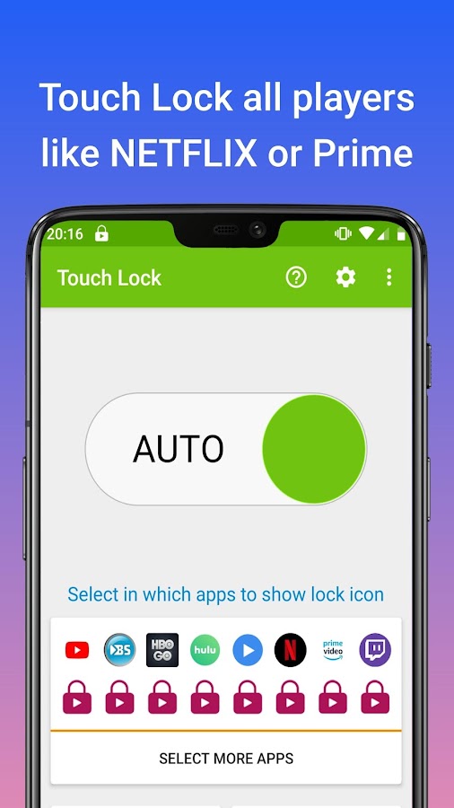 Touch Lock отключит сенсорный экран и скроет кнопки во время работы любого видеоплеера. Когда вы или ваш ребенок смотрите видео, он блокирует сенсорный экран и отключает сенсорные кнопки навигации, поэтому вы остаетесь заблокированными внутри службы потокового видео.