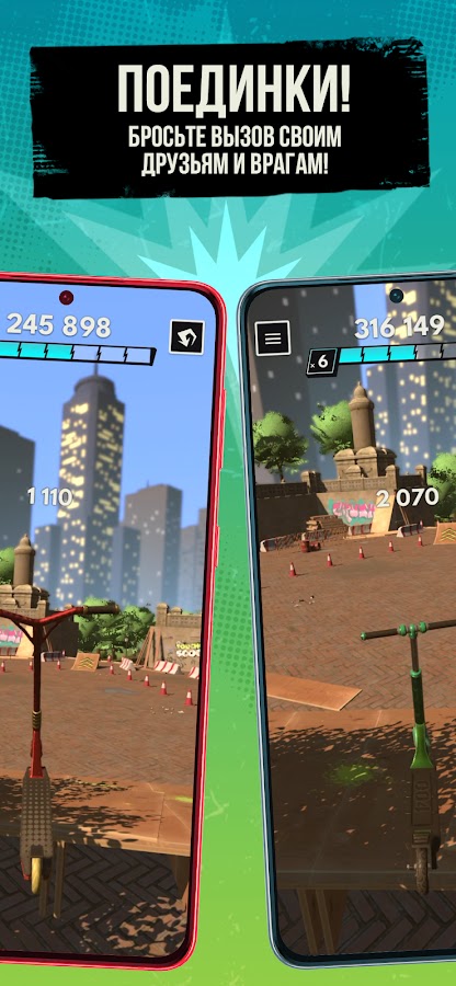 ПРИДУМЫВАЙТЕ ДИЗАЙН, МЕНЯЙТЕ ДЕТАЛИ и собирайте кастомизируемый самокат с возможностью выбора из сотни цветов. Зарабатывайте и разблокируйте дополнительные детали, эпичные и легендарные самокаты, а также многое другое!