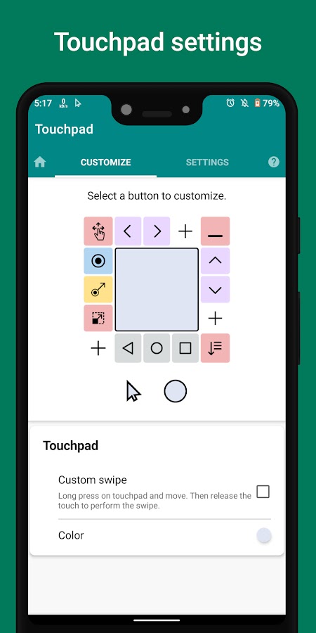 Сенсорная панель имеет несколько кнопок действий, которые помогают вам управлять своим телефоном или планшетом с большим экраном очень быстро и одной рукой.