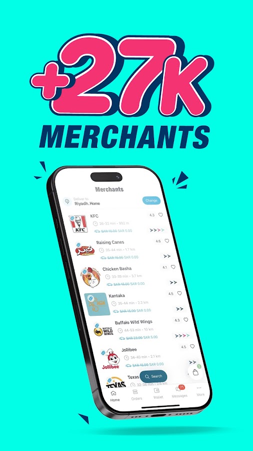Когда дело доходит до заказа еды, выбирайте из лучших ресторанов, таких как McDonald’s, Albaik, Starbucks, Pizza Hut, KFC и Kudu, или откройте для себя местных поваров, готовящих все: от шипящей шаурмы и сливочной пасты до свежей выпечки и аутентичных арабских блюд.