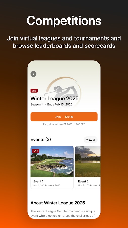 • Быстрый вход для легкого подключения вашего личного профиля Trackman и немедленного начала отслеживания вашей игры в гольф