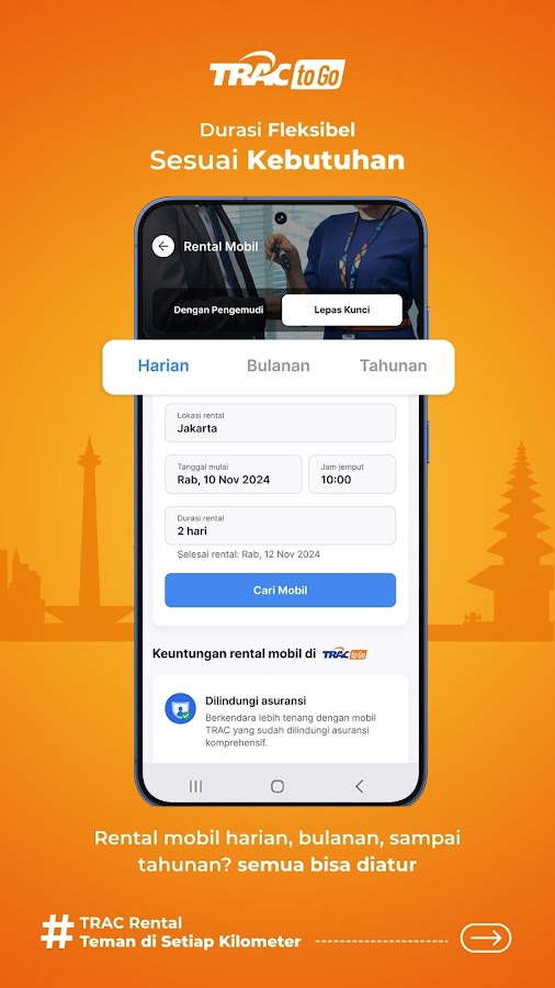 TRACtoGo поможет вам с арендой автомобиля в более чем 24 крупных городах Индонезии. Мы предлагаем широкий выбор транспортных средств — от городских автомобилей, минивэнов, внедорожников до автобусов. Хотите арендовать автомобиль посуточно, помесячно или на год? Мы также предлагаем варианты аренды с водителем или без него. Наш ухоженный автопарк и круглосуточная служба поддержки клиентов гарантируют безопасную и беззаботную поездку.