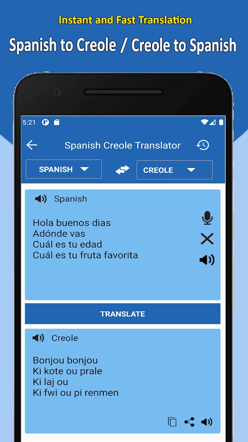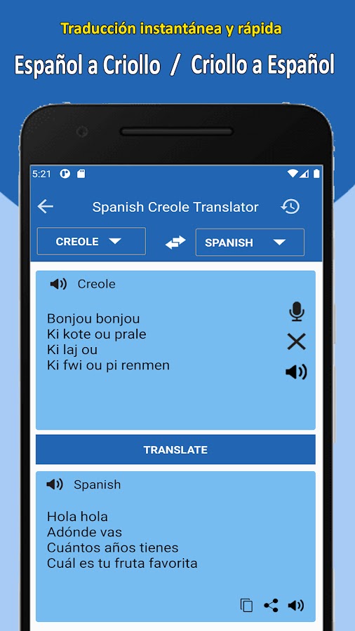 Перевод с испанского креольского на испанский – это просто потрясающе для языкового перевода. Приложение для изучения испанского креольского языка использует самые передовые технологии, которые обеспечивают точную работу переводчика.