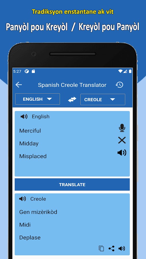 Скачайте приложение Traduction Creole Espagnol для Android бесплатно - последняя версия (3.2.20) уже доступна для установки на ваш телефон или планшет.