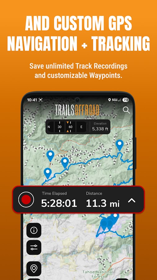 • Инструменты для отслеживания и путевых точек: записывайте свои приключения в режиме реального времени с помощью мощной регистрации треков GPS. Сбрасывайте путевые точки для кемпингов, препятствий, развилок троп и многого другого.