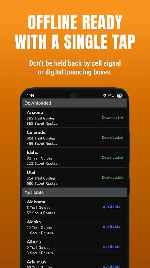 Работает в автономном режиме: загружайте карты троп и путеводители для отдаленных районов, где исчезает сотовая связь. Оставайтесь на курсе с помощью GPS-отслеживания, даже если вы полностью офлайн.
