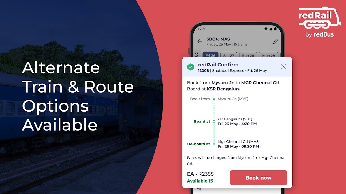 ✔ Безопасное восстановление пароля IRCTC, повышенные шансы на подтверждение бронирования благодаря альтернативным предложениям поездов от redRail