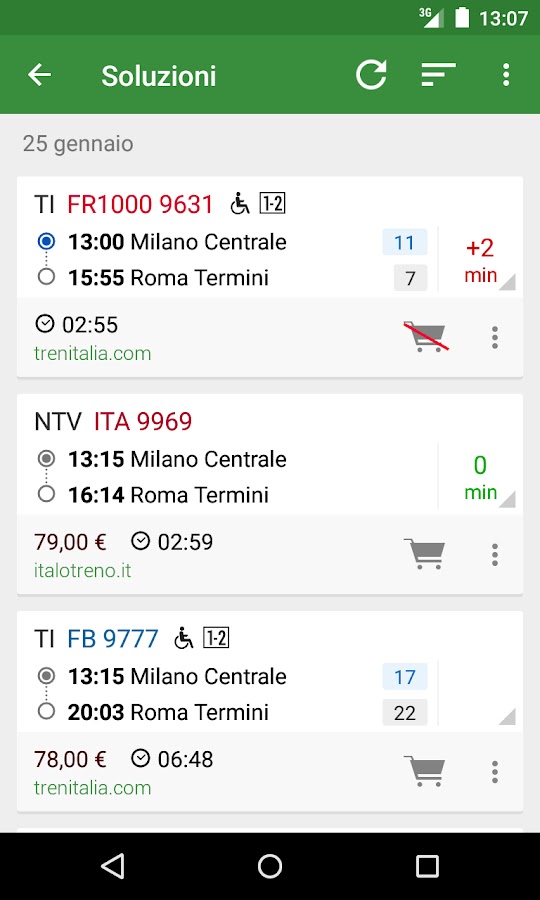 — Синхронизируйте свои учетные записи Trenitalia, Italo, Trenord