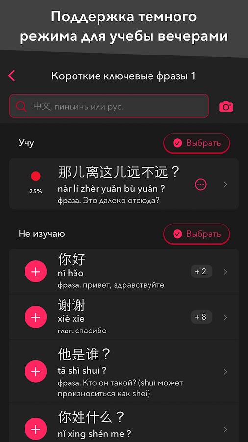 ★ trainchinese отлично подходит для учебы! Наши слова организованы в более чем 1 000 словарных списков и охватывают темы от самых простых повседневных диалогов до международных отношений. Вы думаете, чего-то все равно не хватает? Пользователи всегда могут связаться с нами и попросить список слов по теме, которая интересна лично им. Мы будем рады помочь!