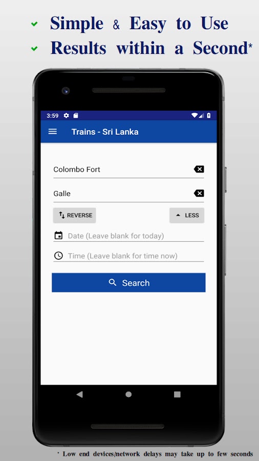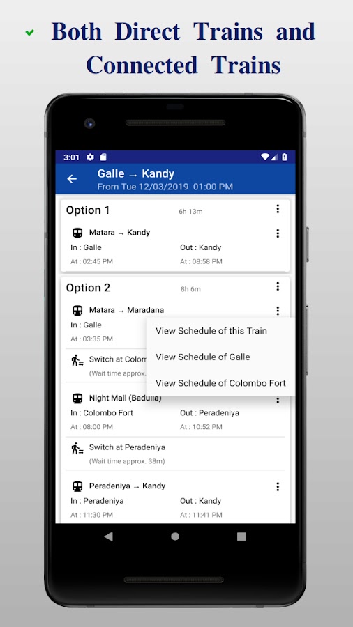 — Поиск поездов между любыми двумя станциями в Шри-Ланке в любую дату / время.