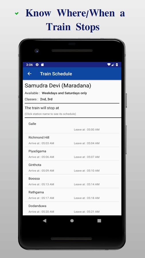 Поезд Шри-Ланка (ранее «Поиск поезда — Шри-Ланка») помогает вам с умом искать поезда в Шри-Ланке и просматривать расписание поездов и станций. Это дает вам список вариантов, которые вы можете путешествовать между любыми двумя станциями.