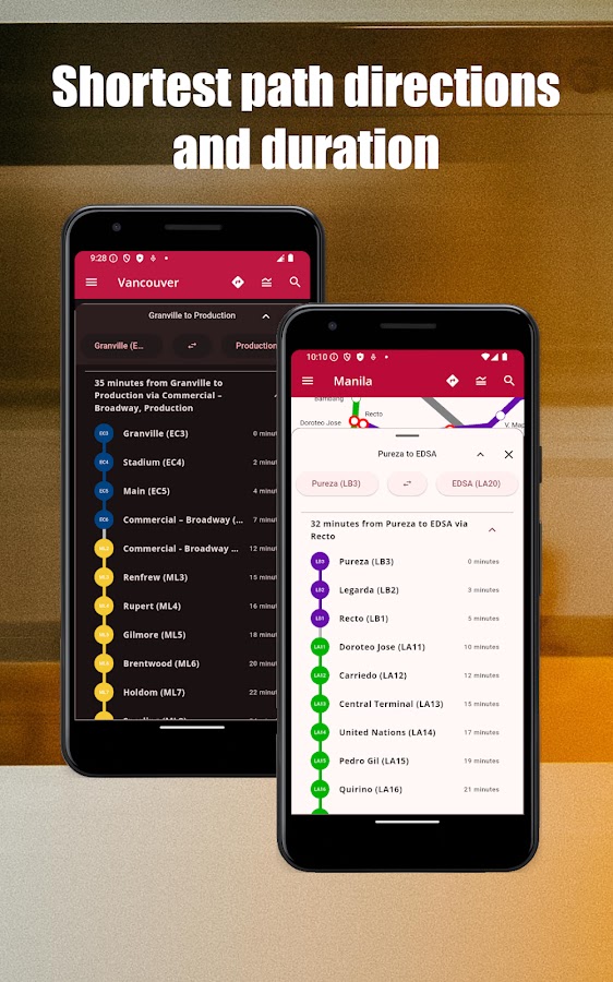 С помощью нашего приложения вы без труда будете ориентироваться в сетях общественного транспорта Манилы и других городов мира, используя векторные карты высокого разрешения. Выбирайте и загружайте необходимые карты, наслаждаясь детальным масштабированием без ущерба для места на диске. Просматривайте расписание и частоту движения поездов, а также время отправления (для карт с расписанием). Доступ ко всем функциям возможен в автономном режиме, без подключения к интернету.