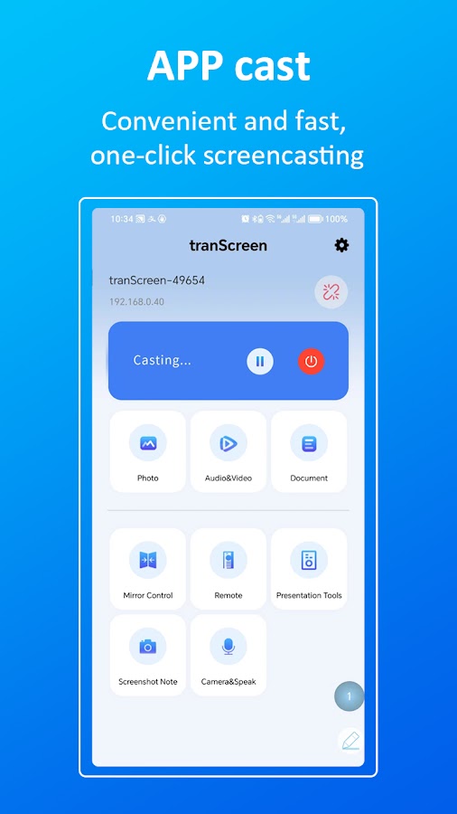 tranScreen — это коммерческое программное обеспечение проекционного экрана для устройств Android для телефонов Android, планшетов Android и других интеллектуальных терминалов с Android 5.0 или более поздней версии. Программное обеспечение для скрининга имеет режим зеркала и режим видео. Зеркальный режим напрямую передает содержимое экрана устройства Android на принимающую сторону; режим фильма напрямую передает видеофайл, хранящийся на устройстве Android, на принимающую сторону в виде видеопотока и воспроизводит видеопоток на принимающей стороне, тем самым реализуя передачу без потерь.