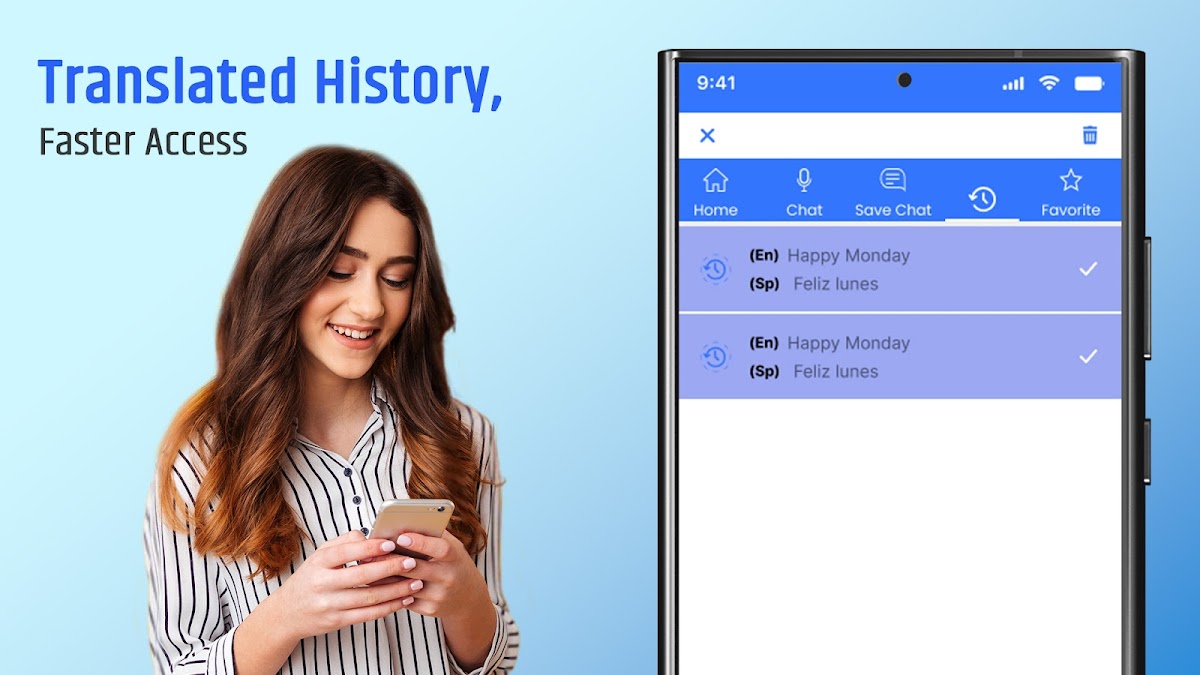 ✔️ История и избранное: сохраняйте свои предыдущие переводы и отмечайте их как избранные для быстрого доступа.