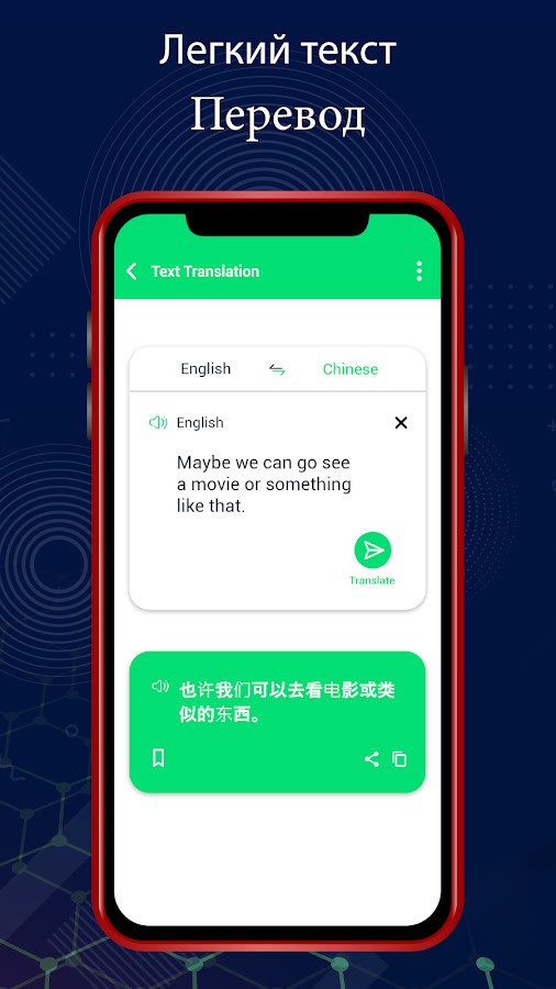 Переводчик текста на всех языках Перевод текста — это метод ввода слов, также имеется опция вставки текста, которую вы можете скопировать и поделиться с другими устройствами. Сохранить перевод как закладку. Слушайте переведенный текст с текстом в речь. Просто нажмите кнопку динамика, чтобы прослушать текст. Голосовой переводчик текста в речь, такой как traductor ingles или любой язык до 100 и легко общаться с иностранцами. Найти значение любых предложений с помощью простой функции перетаскивания, Перевести на экране приложения.