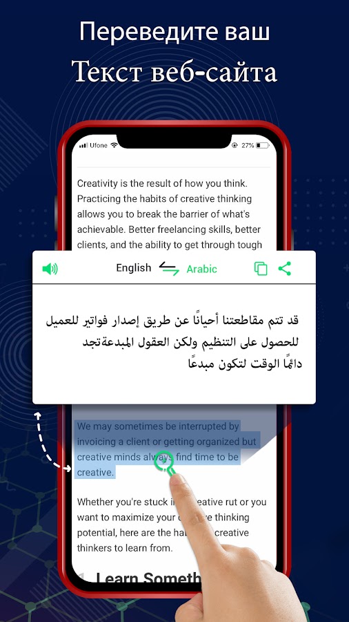 Copy Translate — это переводчик, который сделает ваши разговоры намного проще на всех языках. Один клик по любому тексту на экране переводчика, он получает автоматически скопированный текст. Теперь вы можете вставить этот текст, где вам это нужно. Не нужно каждый раз писать, чтобы скопировать любой текст на экранном переводчике, выбрать текст на экране с помощью этого инструмента копирования текста и легко вставлять, обмениваться и переводить выбранный текст с помощью функции «Копирование текста».