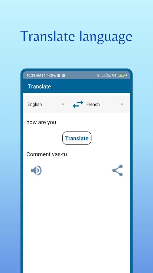 Кроме того, пользователь может поделиться своим переведенным языком с кем-либо в WhatsApp, Instagram, Facebook или любых социальных сетях. Приложение для определения языкового переводчика позволяет пользователям распознавать или переводить язык с помощью записи голоса. Пользователи также могут слушать свои переведенные слова на выбранном ими языке.