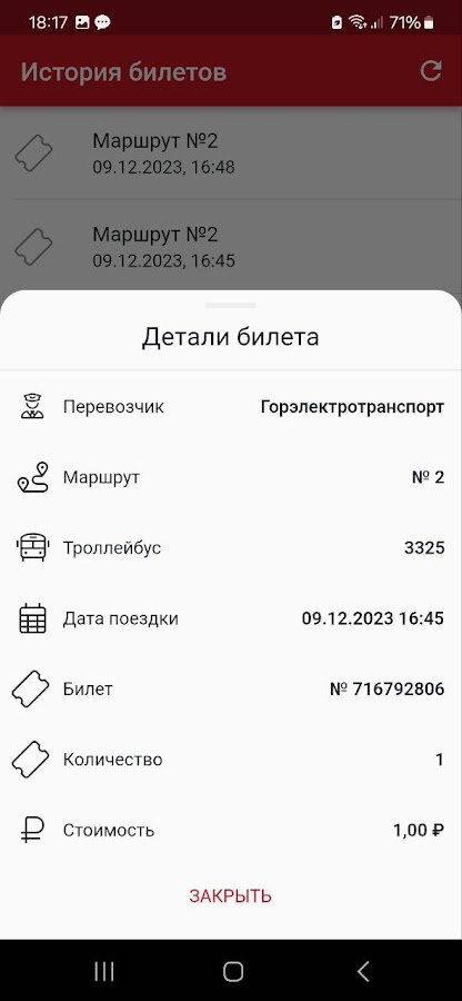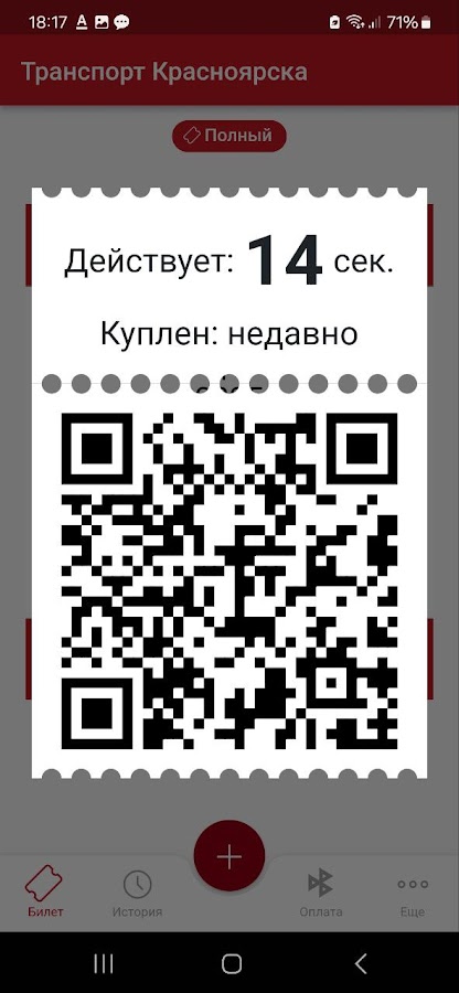 Приложение позволяет купить билет для проезда в городском транспорте г. Красноярска по QR-коду.