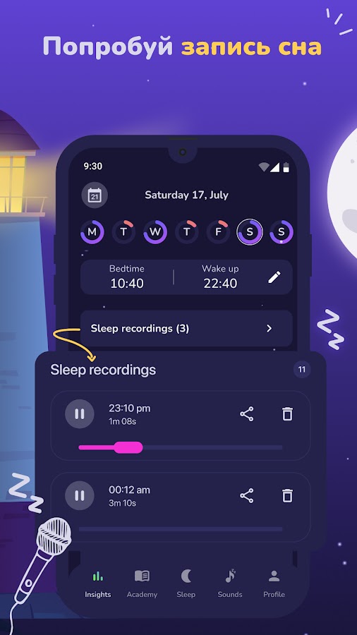 ✨ Записывать и анализировать храп с помощью аудиозаписи сна