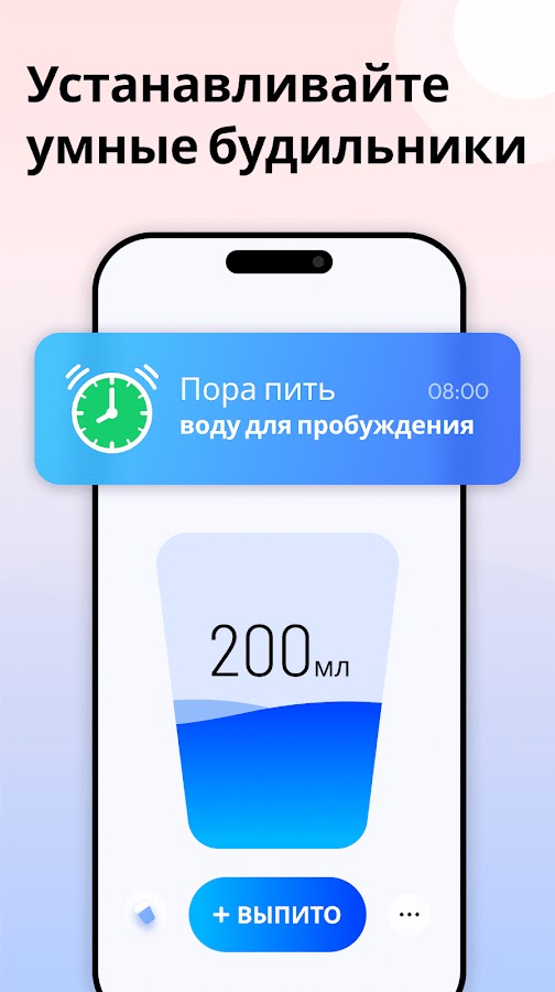 Если вы не пьете достаточно воды лишь потому, что забываете это делать, приложение Напоминалка и трекер приема воды поможет вам эффективно решить эту проблему. Вы можете настроить автоматические смарт-напоминания на основе своего распорядка дня: сразу после того, как вы проснулись, перед/после еды и перед сном. Вы ничего не пропустите!