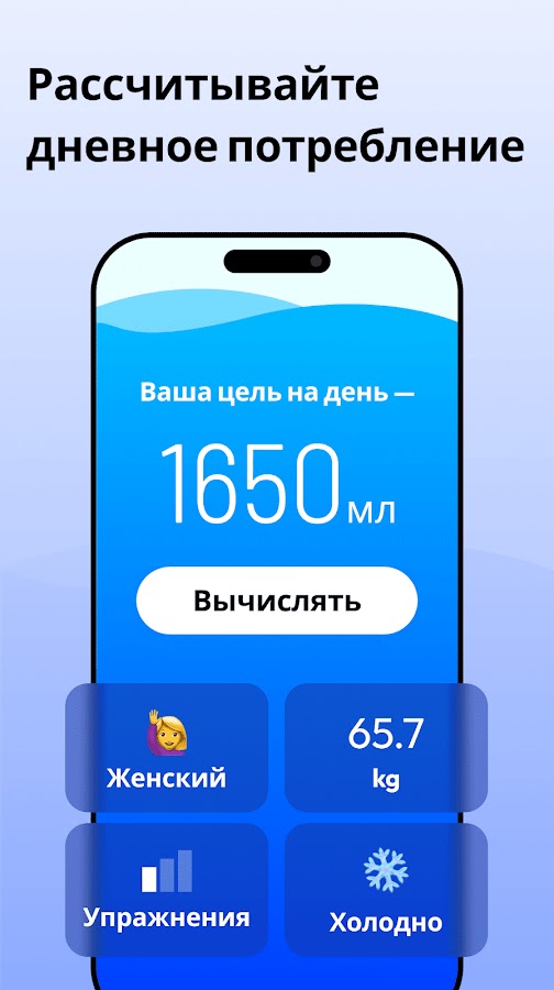 💧 Установите индивидуальную цель на день и достигайте ее!