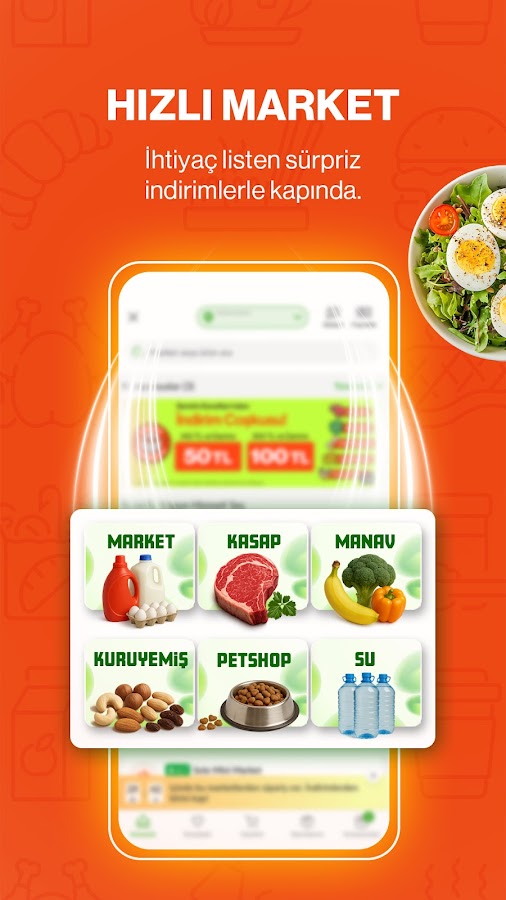 Заказывайте воду, бутилированную воду, закуски, чистящие средства и средства личной гигиены в магазинах A101, Migros, Watsons и других местных магазинах. Покупка продуктов теперь стала быстрее, проще и всё в одном приложении.