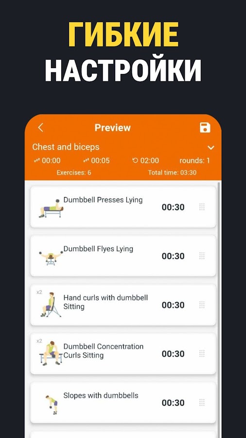 💪 Возможность создавать свою тренировку из определенных упражнений и настроек