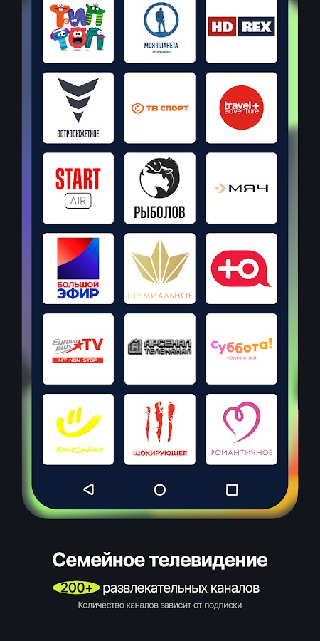 От новостных до развлекательных передач. Более 20 уникальных каналов: «Романтичное», «Остросюжетное», «Советская киноклассика» и др. Ставьте на паузу, перематывайте, смотрите записи за 7 дней, добавляйте в избранное и устанавливайте напоминания, чтобы ничего не пропустить.