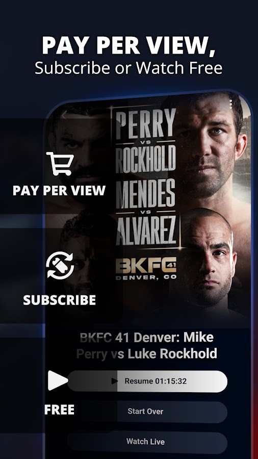 Получите лучшее предложение на спортивные трансляции с подпиской на TrillerTV+, которая предлагает регулярный выбор программ в прямом эфире и доступ по запросу к профессиональным рестлингу, Bare Knuckle, смешанным боевым искусствам, футболу и другим спортивным событиям.