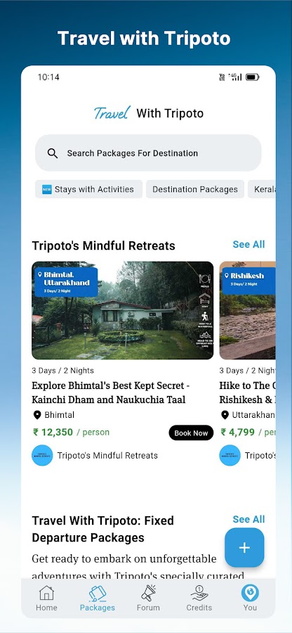 Агрегатор пакетов: Tripoto работает как отличное приложение для праздничных пакетов, которое объединяет некоторые из лучших пакетов как офлайн, так и онлайн-туристических агентств. На Tripoto вы можете находить и сравнивать пакеты, отправлять данные нескольким поставщикам без бронирования и одновременно подключаться к нескольким поставщикам.