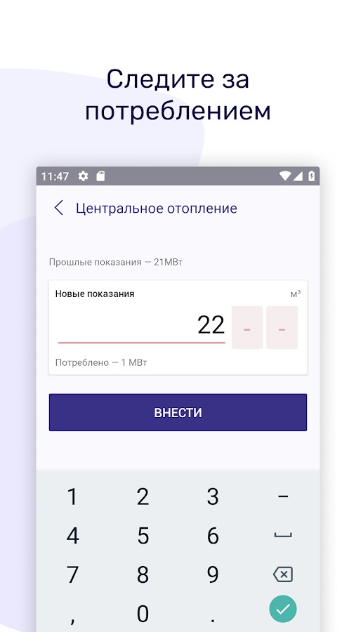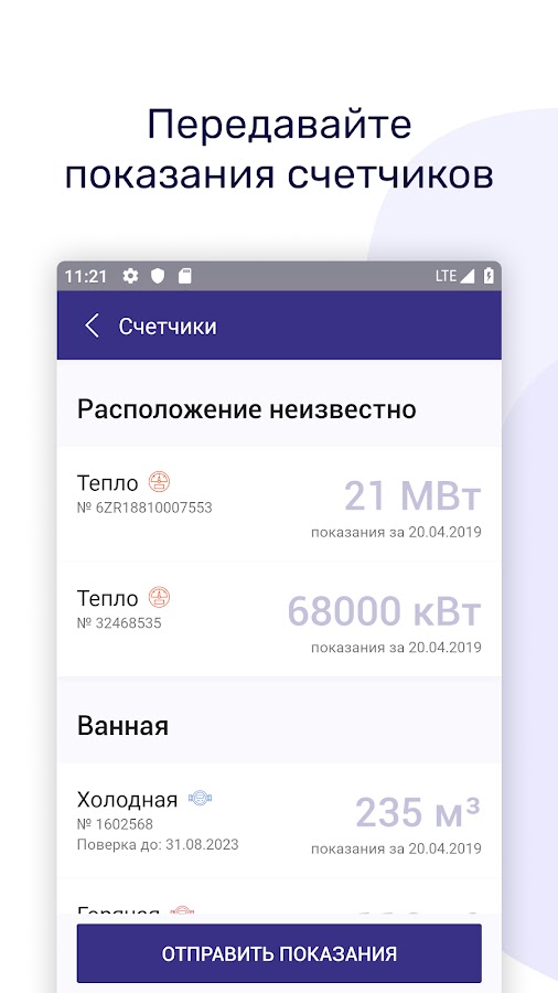 — Подать показания счетчиков и посмотреть предыдущие показания — это займет меньше минуты. Если у вас в квартире несколько счетчиков, то приложение покажет их все, а так же напомнит, что пора передавать показания.