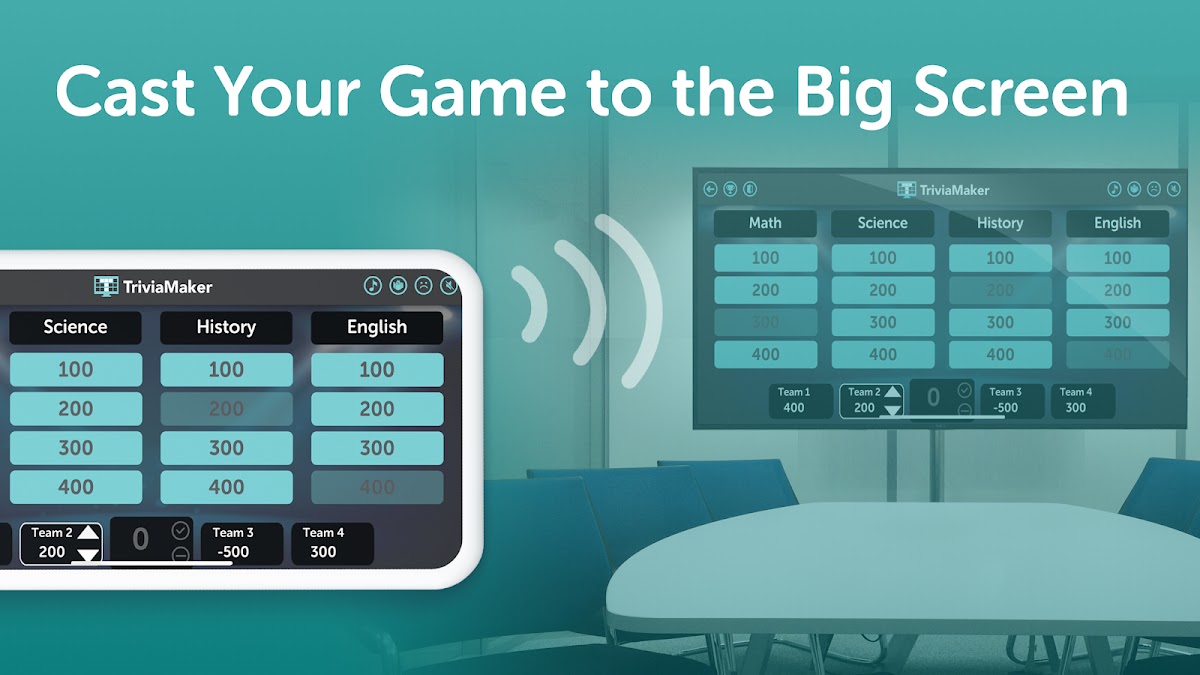 Trivia Maker работает в облаке, поэтому после создания учетной записи вы можете создать викторину на одном устройстве, а затем отобразить ее на другом устройстве перед своей аудиторией с помощью телевизора или проектора.