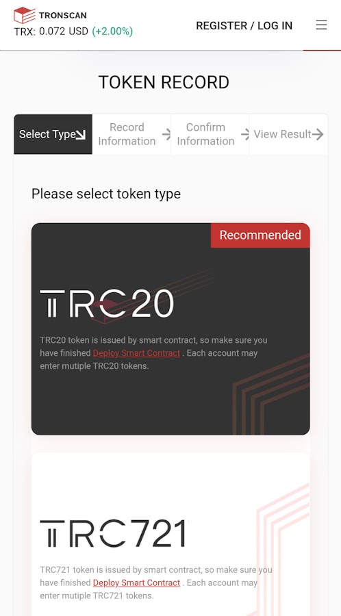 Примечание. Чтобы получить доступ к расширенным функциям web3, таким как подключение к кошельку, чеканка, стейкинг и обмен, посетите веб-приложение TRONSCAN (https://tronscan.org) через TronLink или аналогичный браузер dApp.