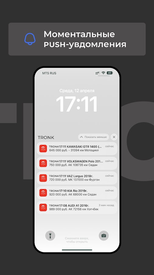 TRONK — представляет собой профессиональный инструмент для поиска и покупки подержанных автомобилей. На данный момент TRONK собирает предложения с 50 популярных досок объявлений и автомобильных порталов России в считанные секунды после их показа на таких источниках, как avito, auto.ru, дром, юла и многие другие.