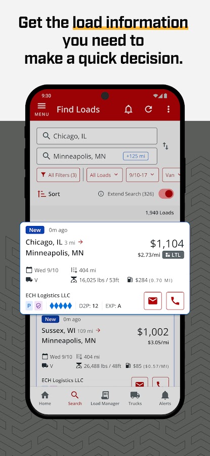 Благодаря скорости и стабильности, на которые вы можете рассчитывать, Truckstop Go доставит вас вперед в рекордно короткие сроки — и это БЕСПЛАТНО при вашей подписке на Truckstop Load Board.