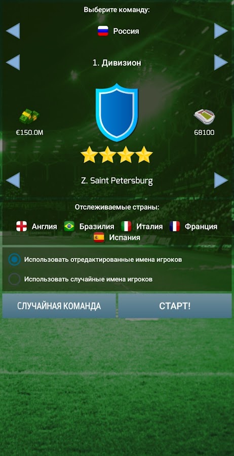 Выберите одну из более чем 5000 команд (из 137 стран!) И начните достигать своих целей и мечтаний. Заставь свою любимую команду доминировать в футбольном мире или выбери одну из низших дивизионов и доведи ее до вершины!