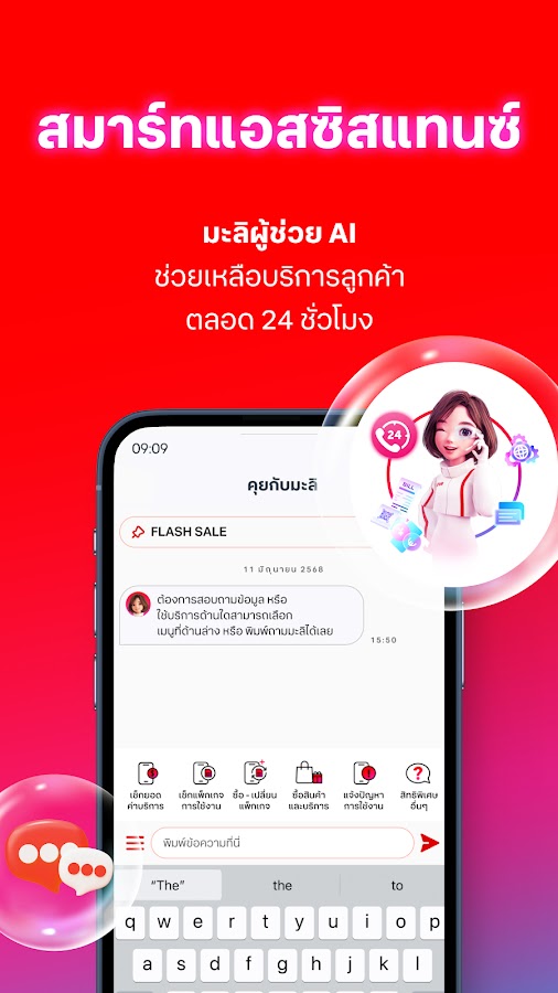 «Мали», AI-помощник, готовый заботиться о вас 24 часа в сутки, рекомендуя решения проблем с True, DTAC и домашним интернетом.