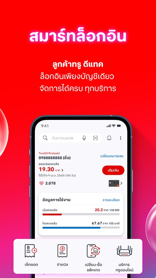 Настоящие клиенты dtac могут войти в систему один раз, управлять всеми услугами, оплачивать счета, проверять баланс, просматривать использование и оплачивать счета одновременно.