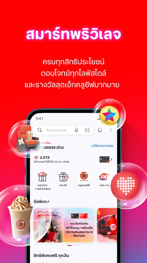 Набирайте баллы True и DTAC. Воспользуйтесь активом, чтобы получить особые привилегии и множество скидок. В комплекте с путешествиями, едой, питьем и покупками.